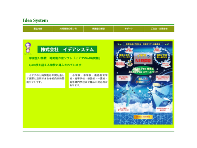 株式会社イデアシステムは、学習型AIを活用した時間割作成ソフト「イデアのAI時間割」を開発・販売する企業です。1993年の設立以来、全国の教育機関に高機能...