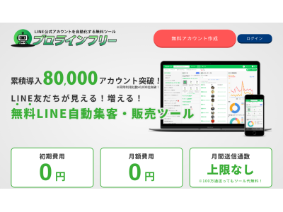 プロラインフリーは、無料で利用可能なLINE公式アカウントのステップ配信ツールを提供する企業です。初期費用や月額費用が一切かからず、送信数にも無制限で...