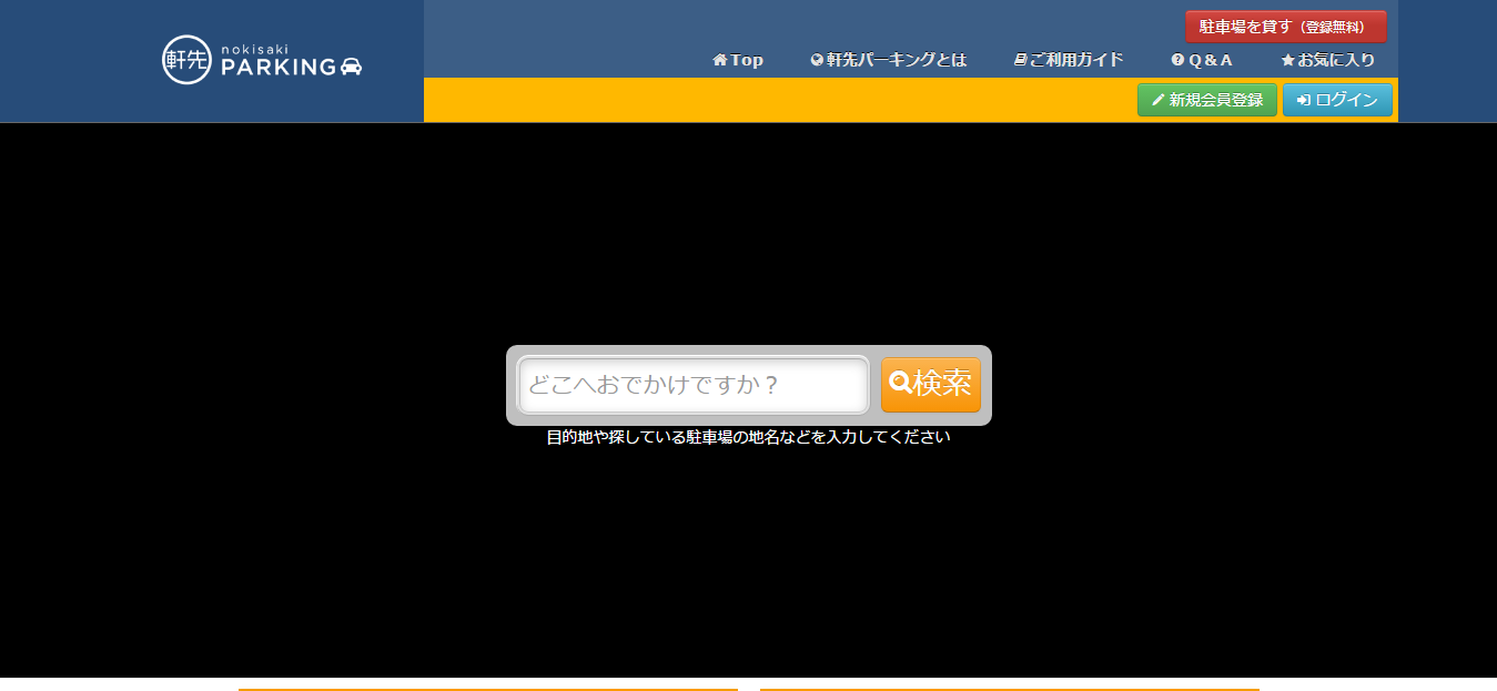 | 軒先パーキング | 空いている月極駐車場や、マンション・アパートの駐車場を、利用したいユーザーに提供する、 シェア型のパーキングサービスです。 |