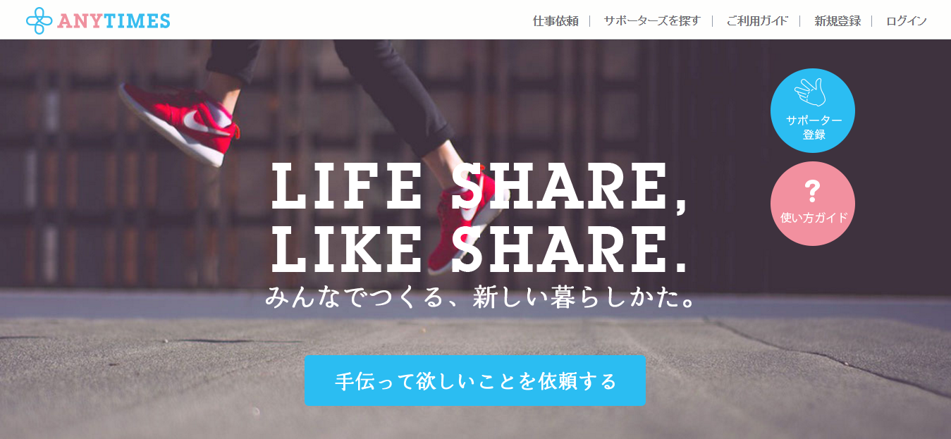 | Any+Times | 代わりにしてもらいたい仕事を、近所で登録しているサポーターに、 依頼できる家事のシェアリングサービス |
