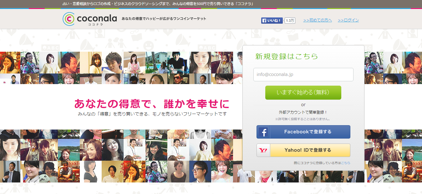 | coconala | 自分が持っている「知識」や「スキル」を、500円で売り買いできるサービス。 |