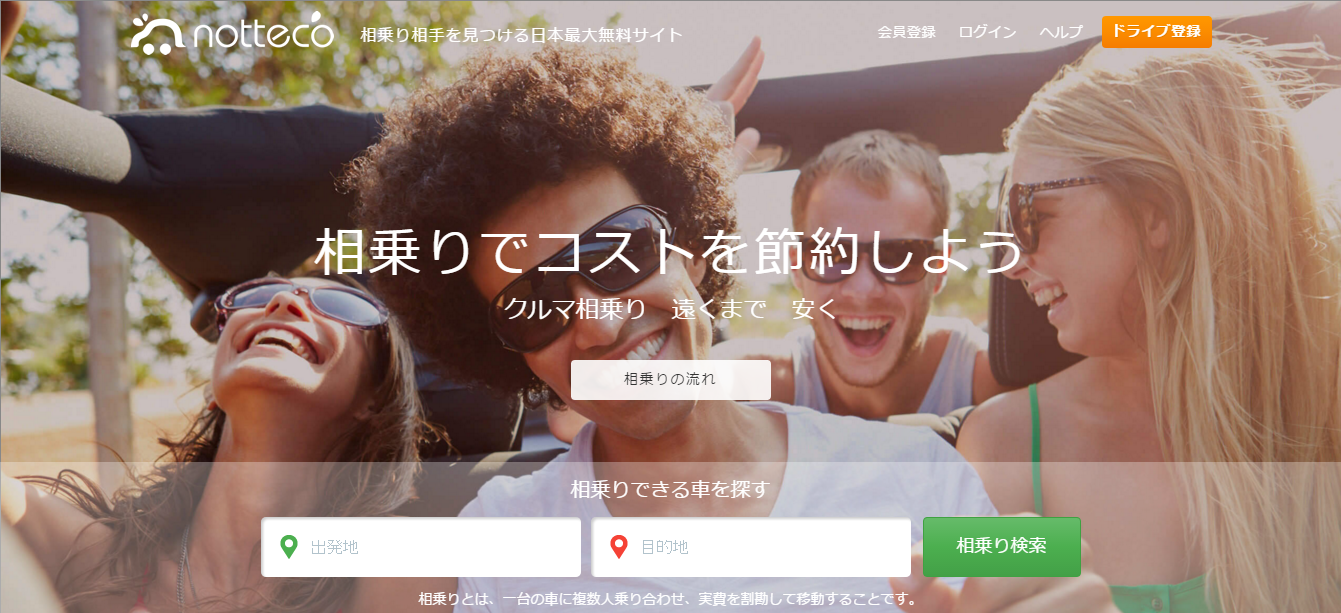 「notteco」は、長距離ライドシェアサービスを提供するサイトです。