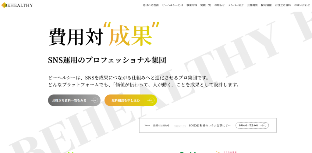ビーヘルシーは、SNSを成果につながる仕組みへと進化させるプロ集団です。