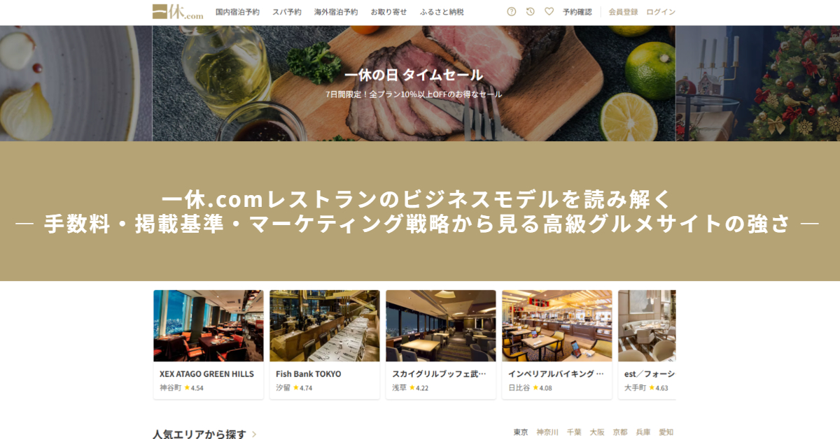本記事では、一休.comのレストラン予約を題材に、手数料や掲載基準の考え方を整理しつつ、これからポータルサイトを立ち上げる企業が「どう設計すれば成功に近づけるのか」を再現可能な形で解説します。