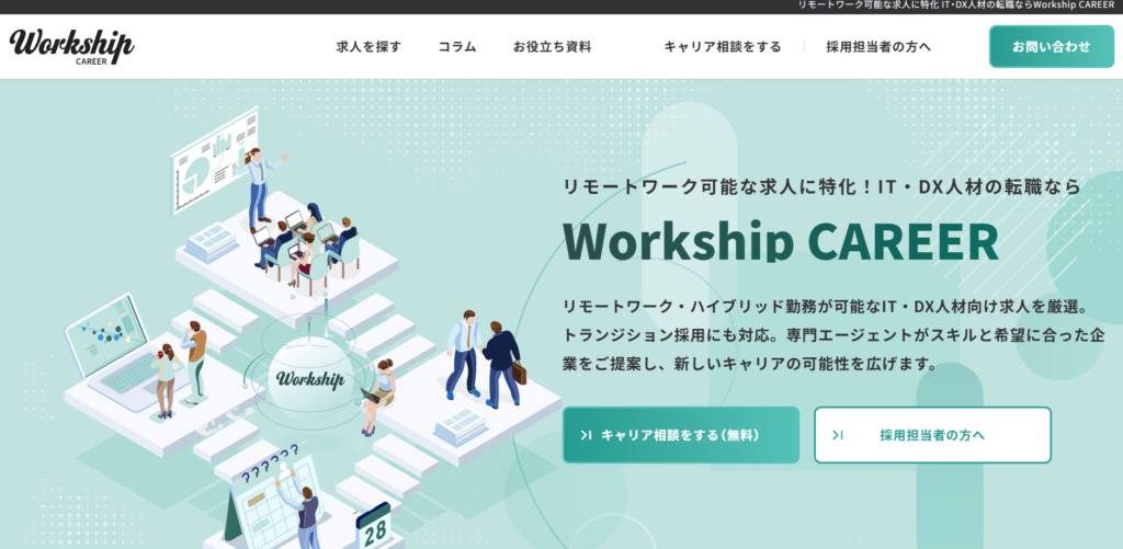 Workship CAREERは、IT・DX領域に特化した転職支援サービスです。エンジニアやデザイナー、マーケター、ディレクターなど、専門スキルを有するデジタル人材を対象に、成長企業とのマッチングを行っています。変化の激しいデジタル業界において、求職者が自身の市場価値を正しく理解し、将来を見据えたキャリア選択ができるよう支援することを目的としています。