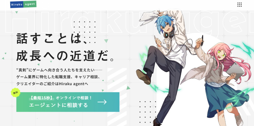 Hiraku agentは、ゲーム業界に特化した人材サービス企業として、求職者と企業双方に向けた支援を行っています。