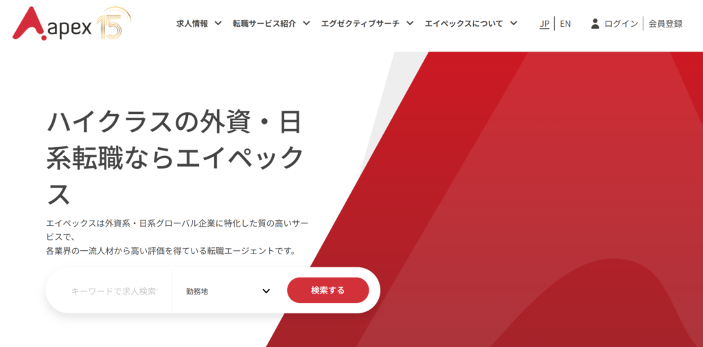 エイペックスは、「外資系・日系のハイクラス転職」に特化し、IT人材の転職支援で豊富な実績を持つ業界特化型の転職エージェントです。2010年の創業以来、IT業界に精通する専門コンサルタントが、IT全般のエンジニア、ソリューションアーキテクト、データサイエンティスト、ITコンサルタント、プロジェクトマネージャーなど、高度なスキルを持つITプロフェッショナルの転職成功をサポートしてきました。業界動向を踏まえた質の高い転職支援は求職者から高い評価を得ており、リクルートメント業界において数々の受賞歴を誇っています。