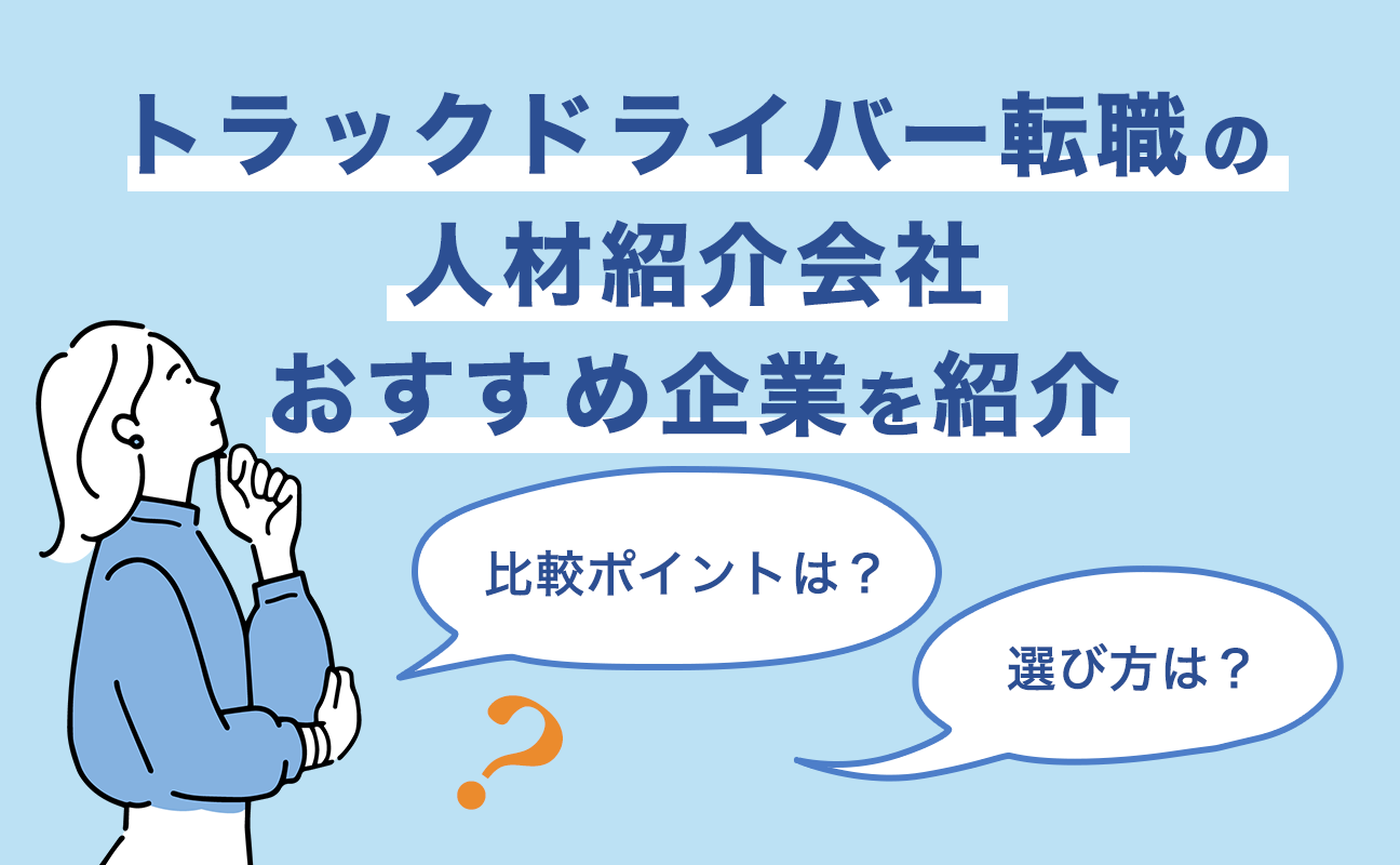 トラックドライバー転職の人材紹介会社は数多くあり、選ぶ会社によって転職活動の質も変わります。比較ポイントを3つのポイントにまとめたので、参考にしてください。