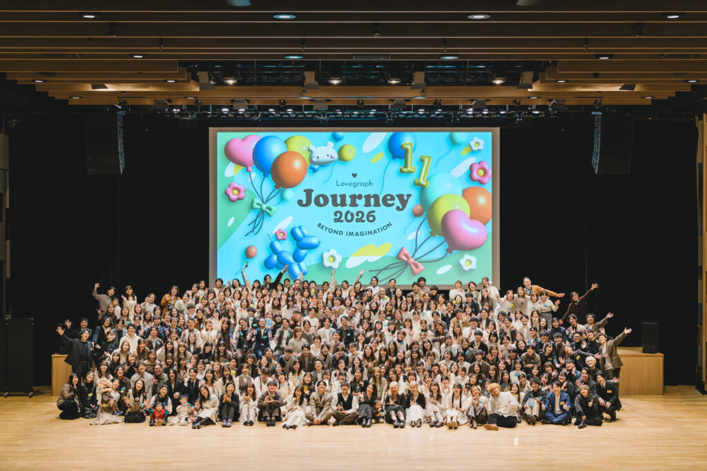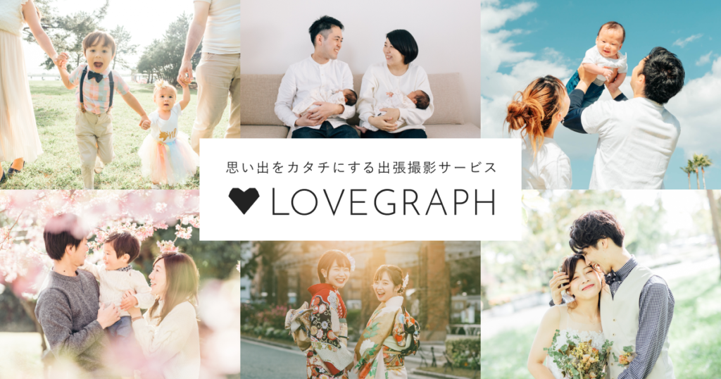 株式会社ラブグラフは「幸せな瞬間を、もっと世界に。」というビジョンのもと、出張撮影サービス「Lovegraph」と写真教室「Lovegraph」を展開している企業です。日本全国に約1,500名のカメラマンが所属しており、お宮参り・七五三・ウェディングなど、家族の大切な瞬間をご希望の場所で撮影しています。
