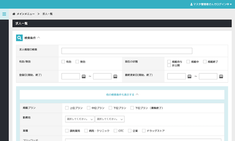 | 求人情報・検索項目の管理機能 | 求人情報の表示項目、検索項目を、管理画面から自由に設定できます |