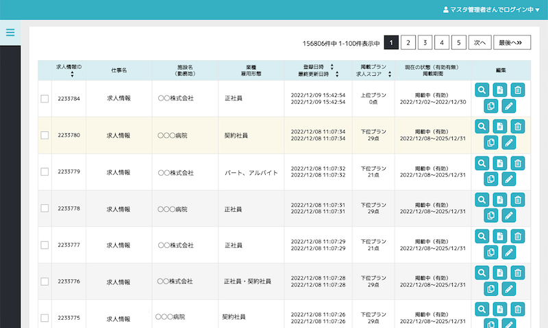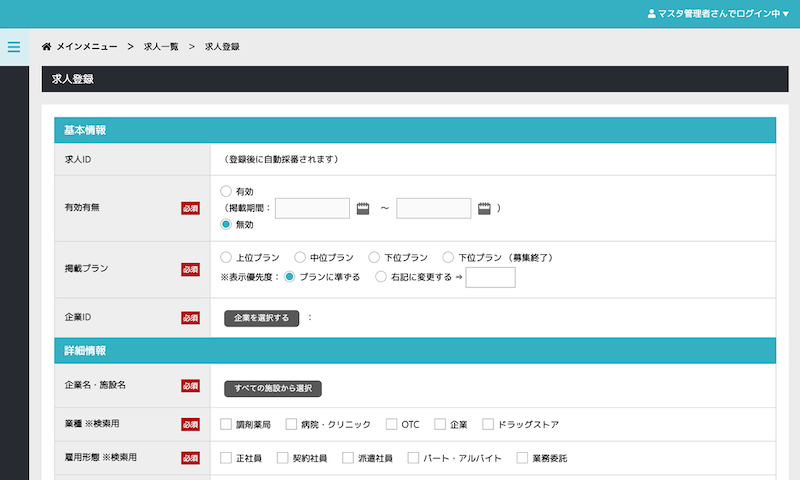 ここで実際に発信する求人情報を登録していき、文言等を調整していきます。