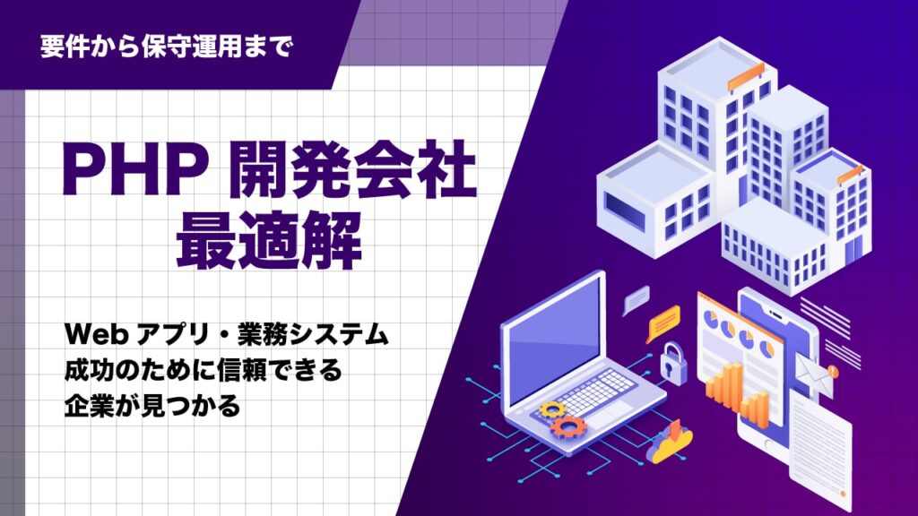 PHPでのシステム開発を検討するとき、単に「PHPが書ける会社」を探すだけでは足りません。実際に重要なのは要件の整理から設計、実装、保守運用までをどうつなぐかであり、事業にとって使えるシステムとして着地させられるかです。特にWebアプリや業務シス... -