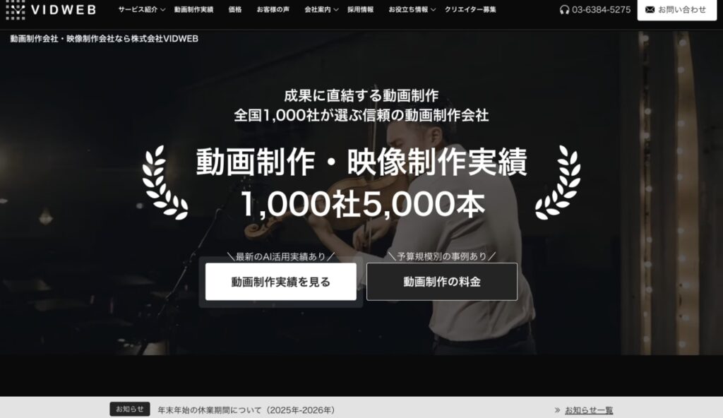 VIDWEBは、国内外の企業・団体から信頼される戦略型の動画制作会社として、目的に応じた映像制作を起点に、成果に直結させる施策まで一貫して提案できる体制を整えています。
