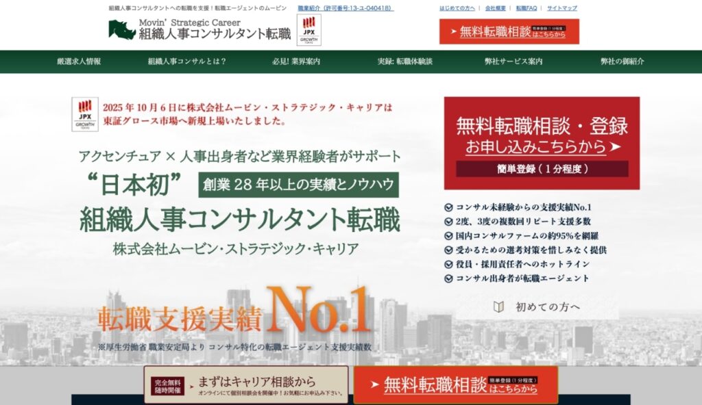 ムービン・ストラテジック・キャリアの事業は、コンサルティング業界に特化した転職支援を軸に、情報提供から紹介、選考対策までを一つの流れとして設計している点に強みがあります。