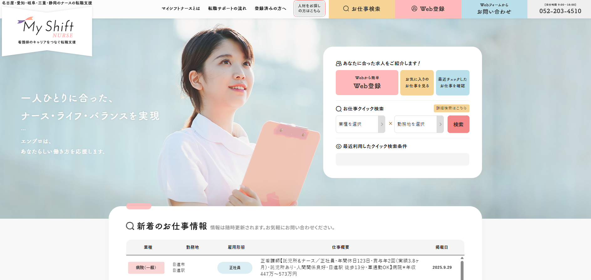 条件絞り込みの精度が高く、医療従事者が安心して利用できるよう清潔感のあるデザインを採用しています。