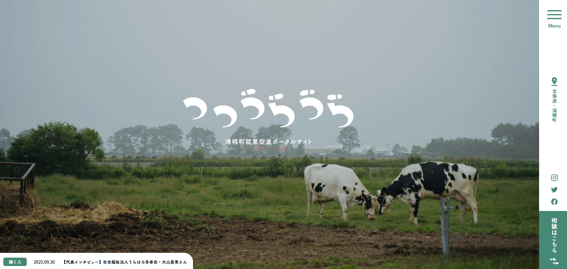 つつうらうら(北海道浦幌町)は地元住民の声や写真をふんだんに掲載し、温かみと安心感を与えるデザイン。
