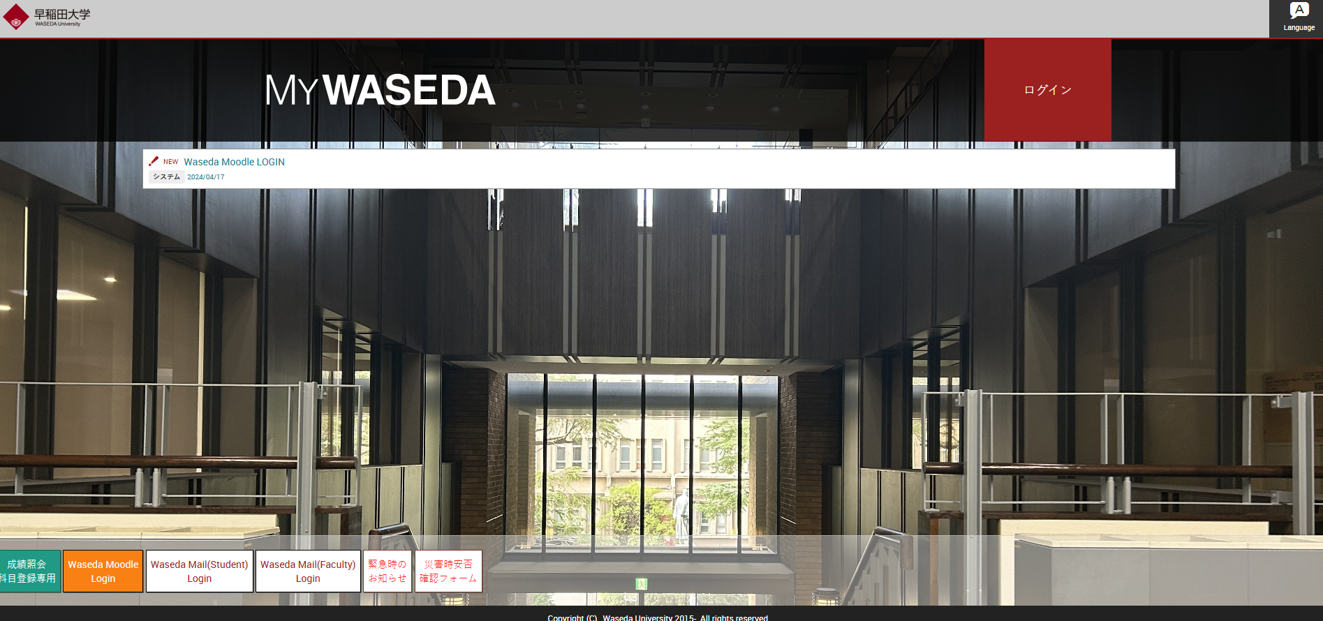 早稲田大学の学生用ポータルサイトMyWasedaは、授業情報・履修登録・図書館予約などをまとめ、学生生活に必要な機能を一画面から操作可能。