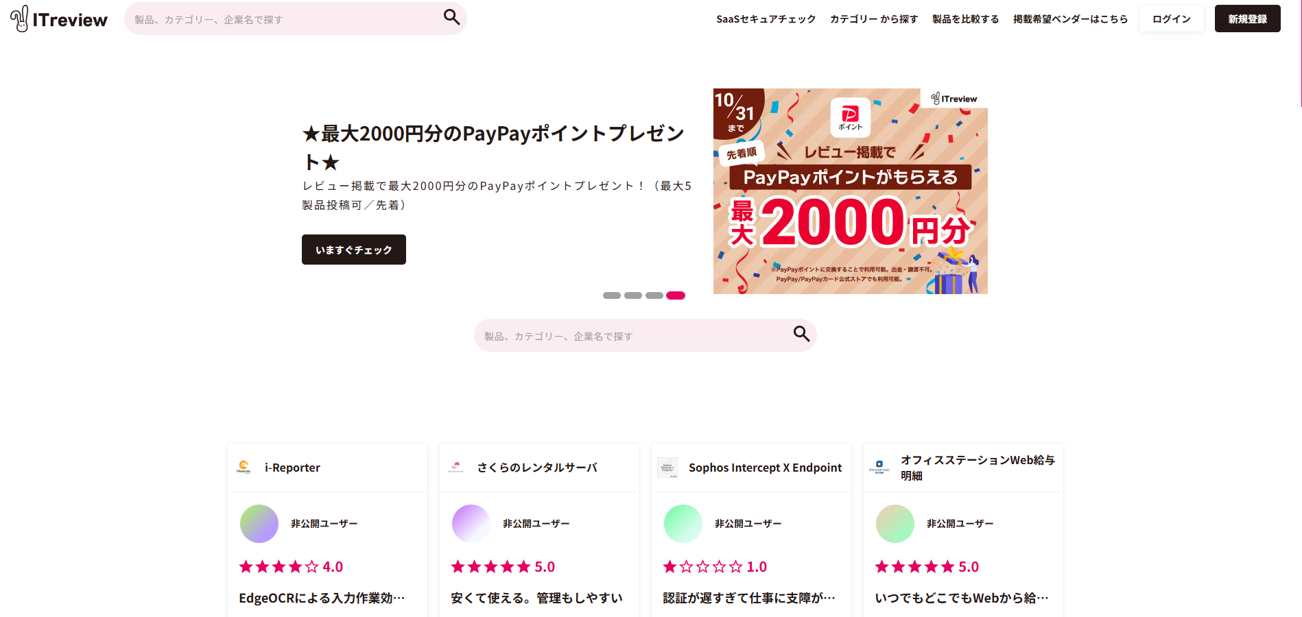 ITreviewは法人向けソフトウェアを口コミとあわせて検索できるポータル。