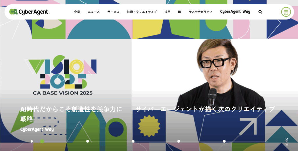 株式会社サイバーエージェントは、1998年に設立された東京・渋谷区のインターネット総合サービス企業です。資本金約76億5,400万円(2025年9月末)を基盤に、「21世紀を代表する会社を創る」というビジョンのもと、広告、メディア、ゲーム、投資育成など多様な事業を国内外で展開しています。