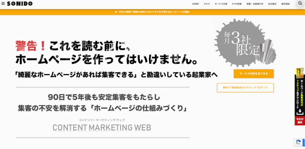 SONIDOの制作は、**「デザインで魅せる」ではなく「言葉と仕組みで惹きつける」**スタイルが基本。訪問者に共感され、行動を起こさせる導線づくりと、安定した売上を生むための“集客の仕組み化”が他社との明確な違いです。