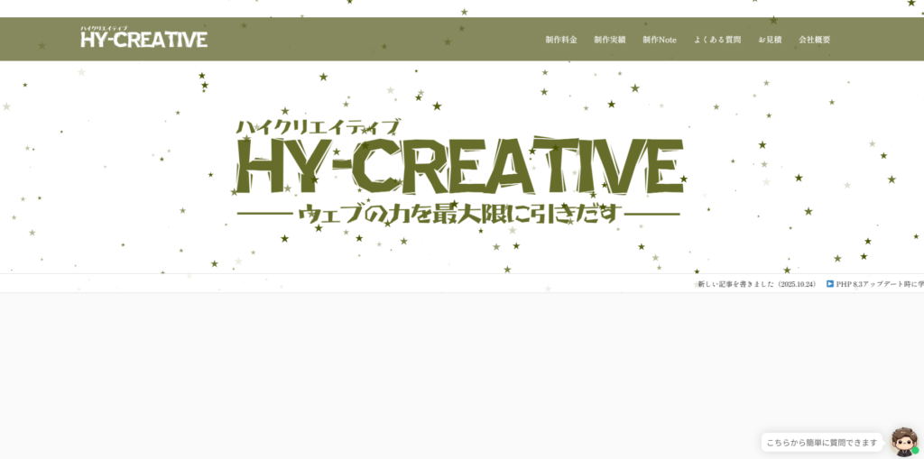 HY-CREATIVE(ハイクリエイティブ)は、比較的低コストかつスピーディーにホームページを立ち上げたい法人・個人事業主向けに強みを持つWeb制作会社です。