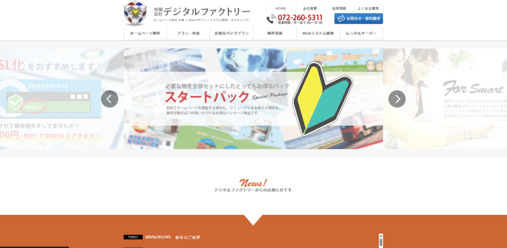 デジタルファクトリー株式会社は、ホームページ制作やWebマーケティング支援を行っている制作会社です。Web サイトの企画・デザイン・構築だけでなく、公開後の運用や集客支援まで一貫したサービスを提供しており、初めての人でも相談しやすい体制が整っています。