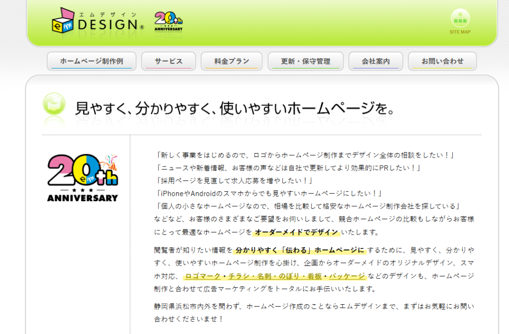 | 株式会社エムデザイン | 21年 | ◎ | 印刷物(会社案内パンフレット・DM・名刺・封筒・チラシ etc.)のデザイン デザイン全般(ロゴマーク・のぼり・看板 etc.) パッケージ等デザインプロデュース 広告戦略プロデュース・ディレクション | 株式会社遠州自動車技工 印章館 株式会社ミラクル経理 |