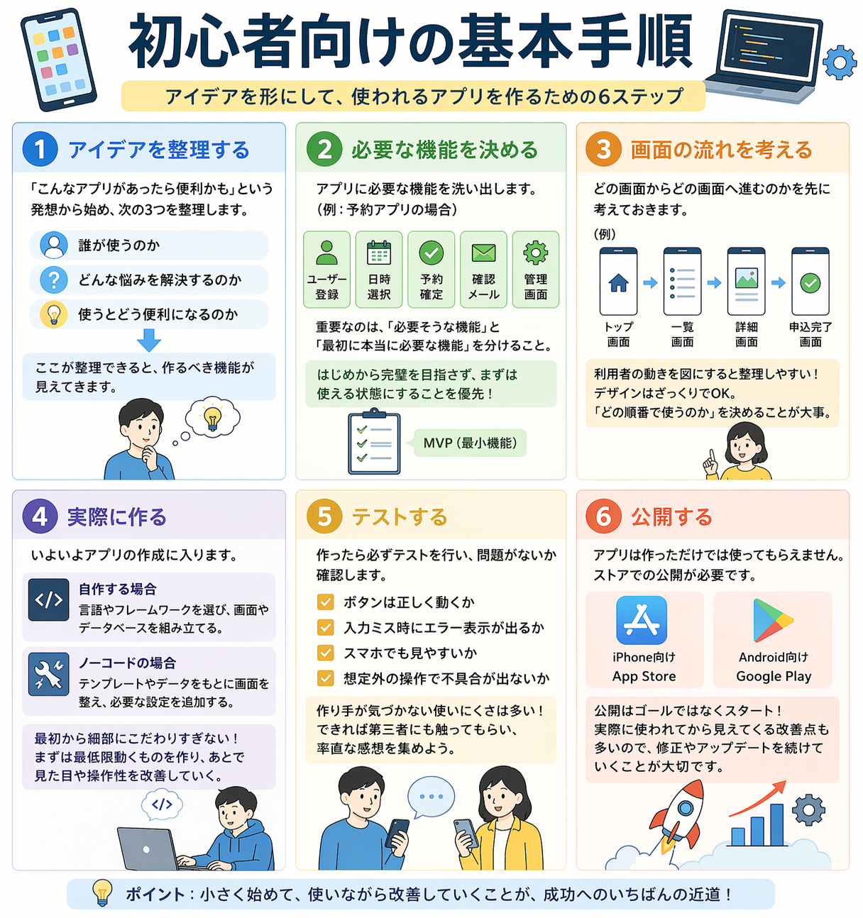 アプリを作るときに大切なのは、次の6つです。