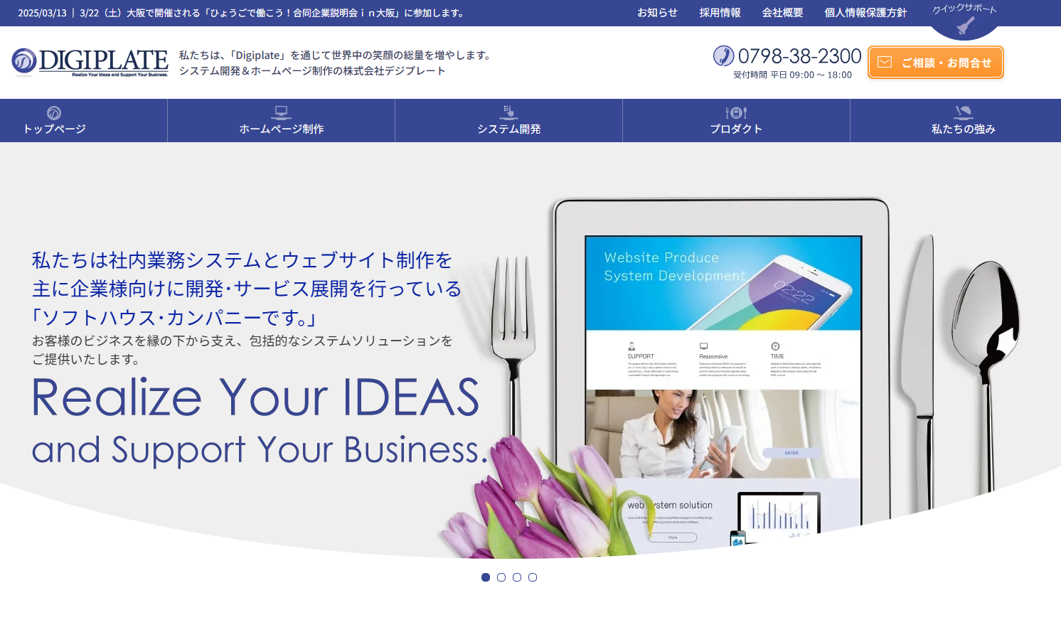 株式会社デジプレートは、SEO対策に力を入れたい中小企業や個人事業主にとって頼れる存在です。同社はホームページ制作に加えて、業務システム開発も行う「ソフトハウス・カンパニー」であり、SEO効果の出やすい技術構造を重視したWeb制作が可能です。
