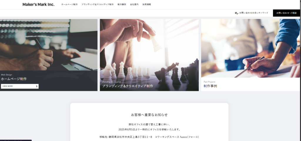 株式会社メーカーズマークは、Web制作を中心に企業のブランド構築や採用活動を多角的に支援する実力派クリエイティブ会社です。創業以来、地域に根ざしながらも、数多くの業種・業態に対応してきた豊富な実績を積み重ねてきました。