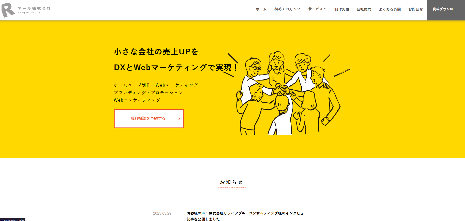 アール株式会社は、地方の中小企業に特化したSEO対策やWebマーケティング支援を行う企業です。これまで多くの企業が抱えていた「ホームページはあるけど集客できない」という課題を、実績と分析に基づくWebコンサルティングで着実に解決してきました。