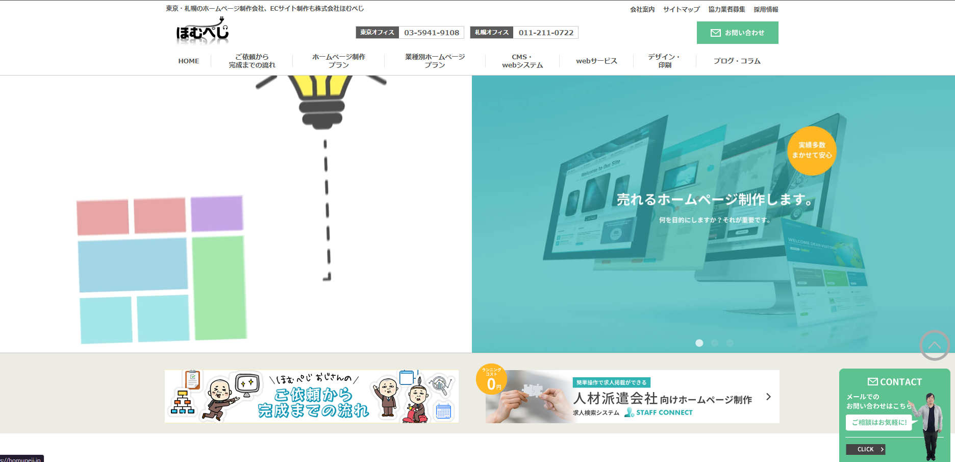 株式会社ほむぺじは、スピード・品質・コストのバランスに優れた“実務重視型”の制作会社です。特に短納期ながらクオリティの高いホームページ制作を得意とし、初めてWebサイトを依頼する方にも丁寧に対応してくれます。