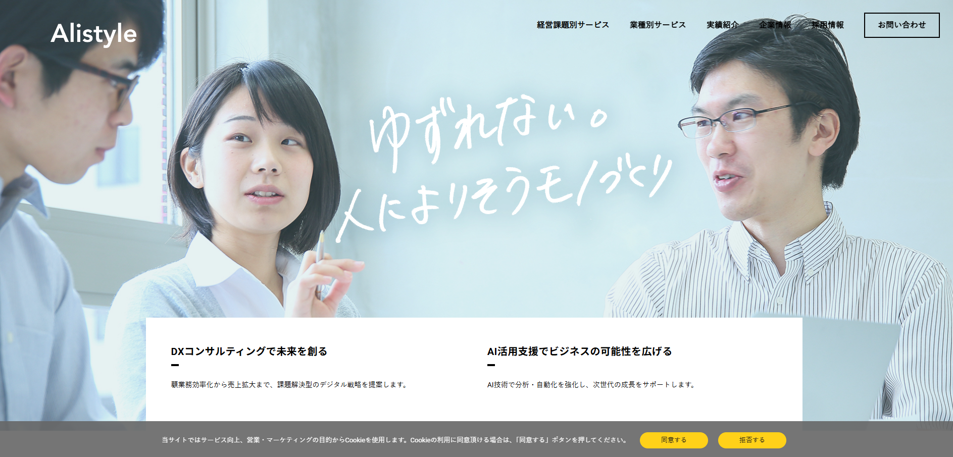 株式会社アリスタイルは、単なるホームページの制作にとどまらず、DX(デジタルトランスフォーメーション)とAI活用を通じて、企業の売上拡大・業務改善を支援するプロフェッショナル集団です。