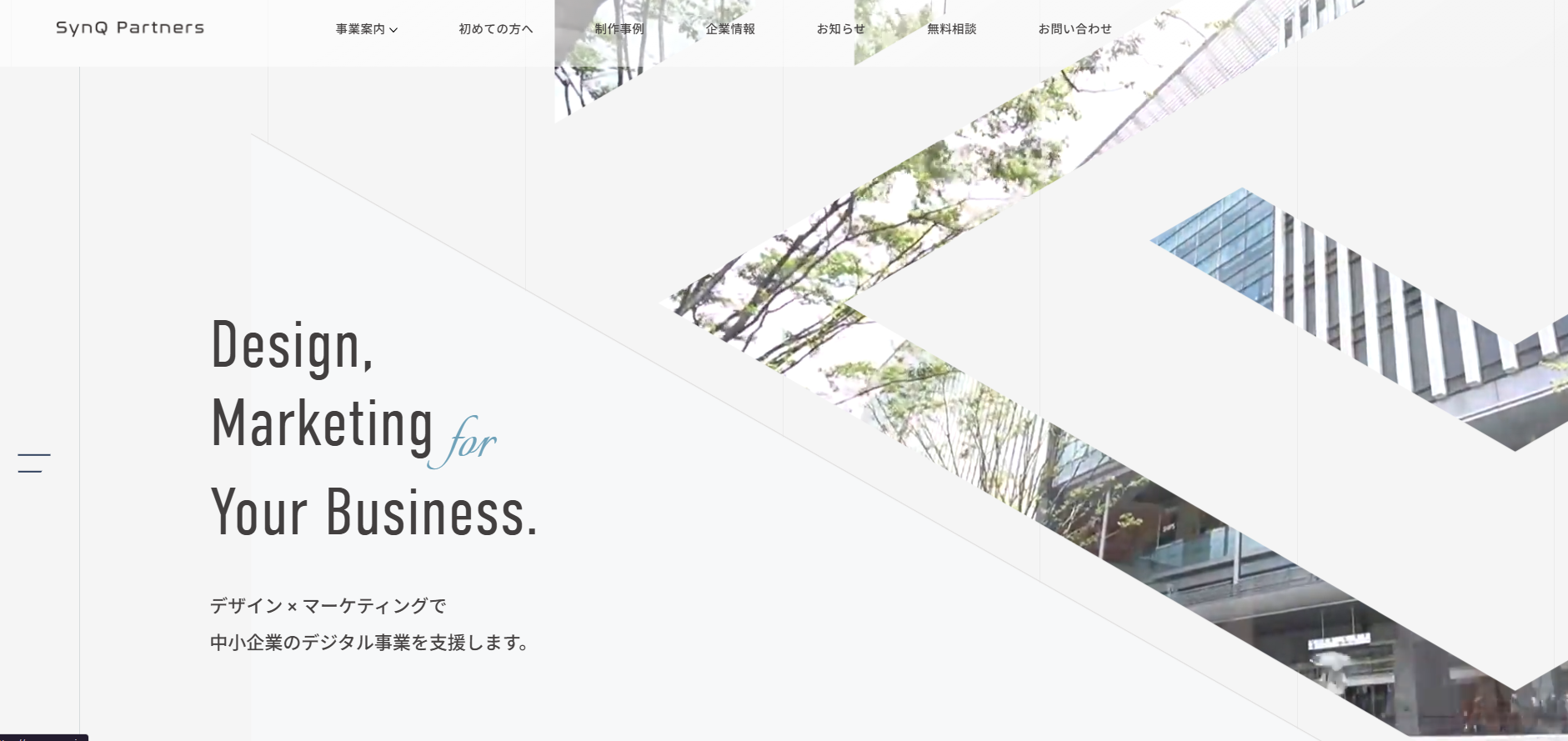 SynQ Partners株式会社は、中小企業のWeb事業をトータルで支援する頼もしいパートナーです。Webサイトのデザイン制作だけにとどまらず、マーケティング視点を重視した構成設計を強みとし、企業の「目的達成」に直結するサイトを構築しています。