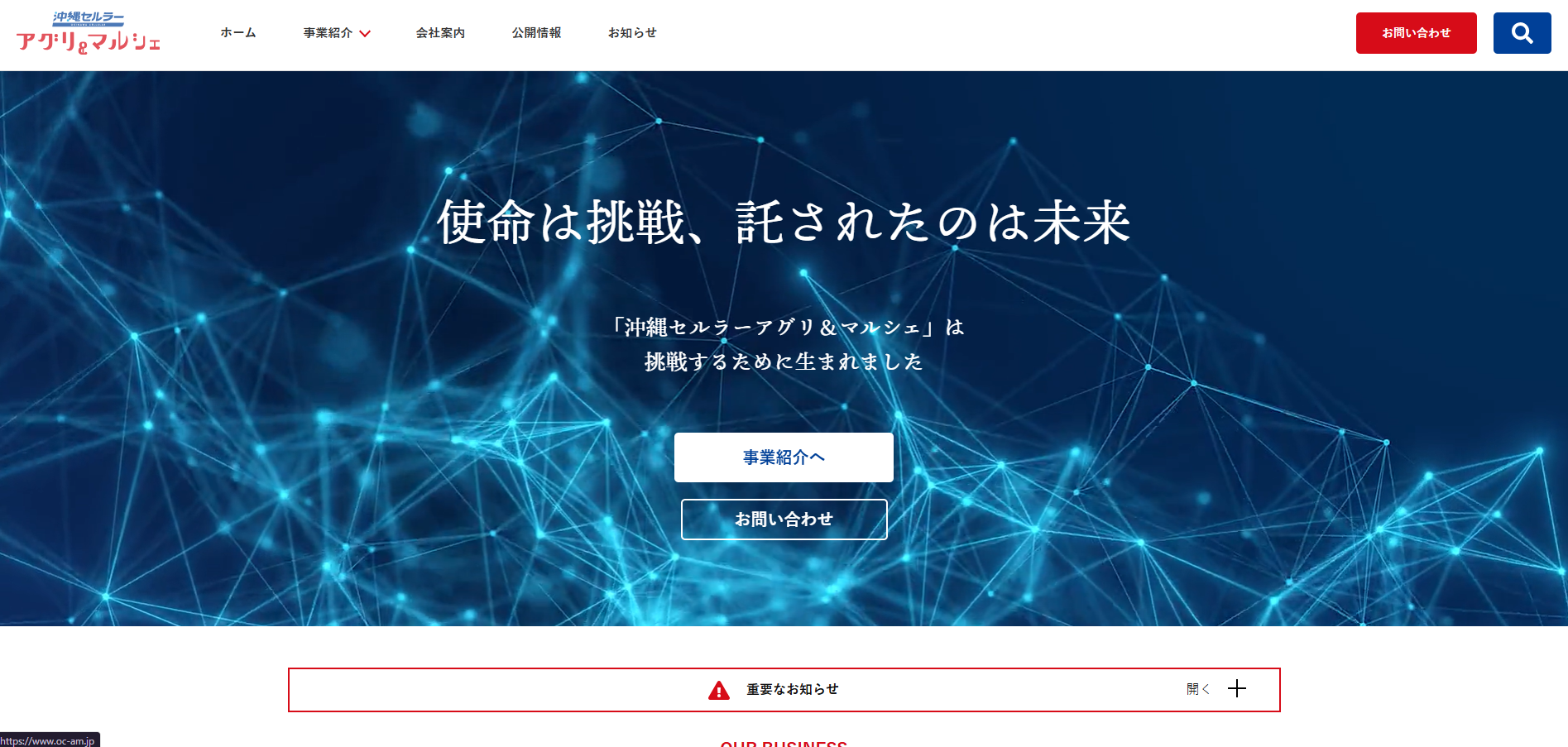 沖縄セルラーアグリ&マルシェ株式会社は沖縄セルラー電話のグループ会社であり、地域の課題解決や産業支援をミッションに、農業・特産品流通・ICT事業を3本柱で展開しています。なかでも「ネットワーク事業部」は、企業向けのホームページ制作・Webシステム開発を専門に手がけています。