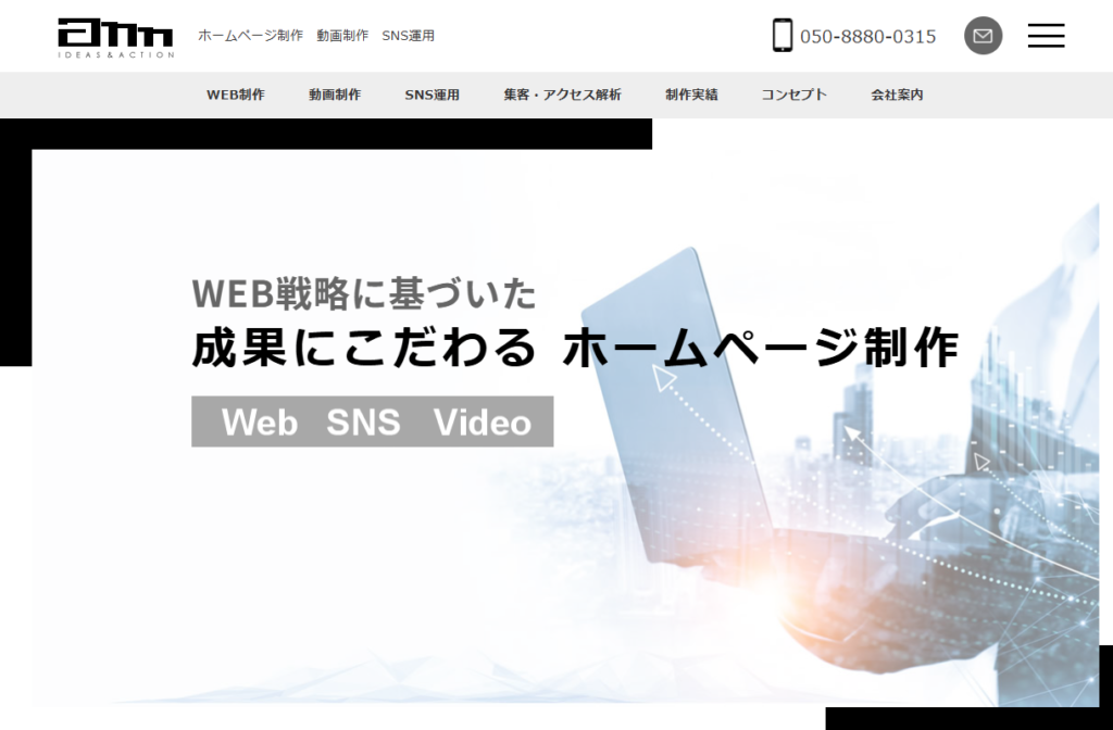 株式会社アンは、Web制作から動画制作、SNS運用、広告戦略、アクセス解析までを一体的に手がける「成果重視型」の制作会社です。