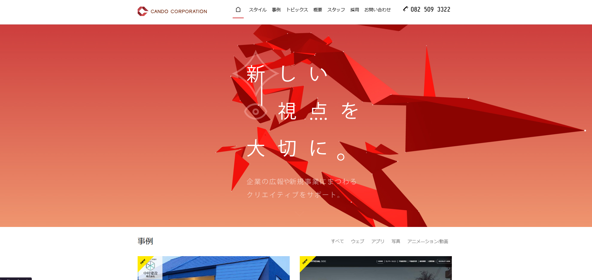 株式会社カンドウコーポレーションは、30年以上にわたって地域と全国の企業に“感動”を提供してきたクリエイティブカンパニーです。Webサイト制作はもちろん、アプリ開発、動画、紙媒体、空間演出など、多メディアにまたがる提案ができる希少な制作会社です。