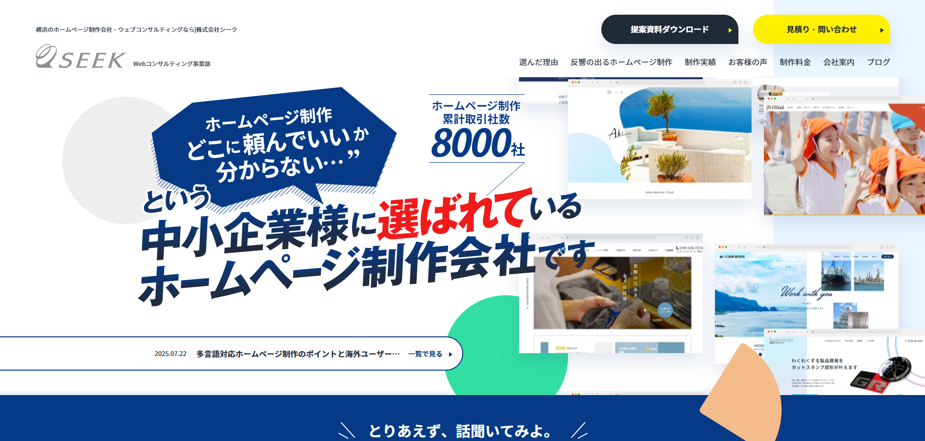 株式会社シークは、2006年の創業以来、特に「反響を出す=問い合わせを増やす」ことを目的とした制作スタイルに強みがあり、これまでに8000社以上の企業と取引実績があります。