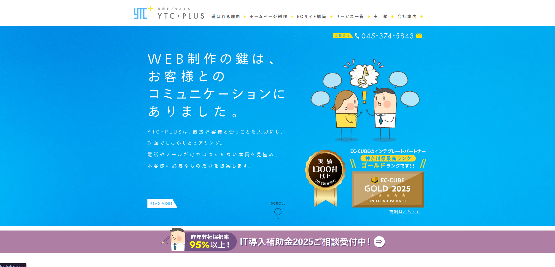 YTC・PLUSは、神奈川県で最上位ランクに認定されているEC-CUBE公式パートナーであり、ECサイト制作に強みを持つ会社です。ネットショップに必要な機能の選定やカスタマイズ、CRMとの連携なども対応可能で、「売れるサイト」を設計するノウハウを豊富に持っています。