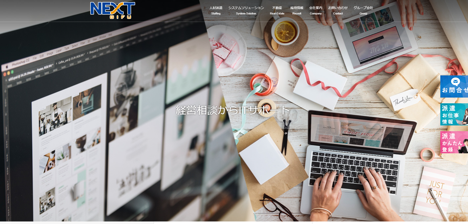 株式会社NEXT岐阜は、Web制作・IT導入・人材派遣・不動産管理など、多岐にわたるサービスを提供する「総合ビジネス支援会社」です。Web制作部門においても、ただ見た目の良いサイトを作るだけではなく、システム設計や業務効率化の視点から企業を支援する姿勢が特長です。