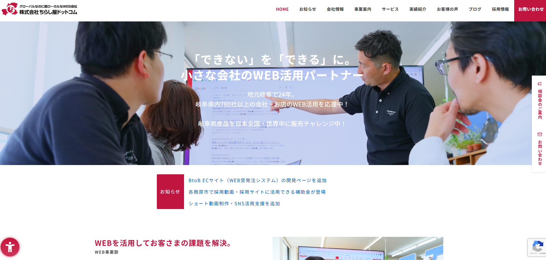 株式会社ちらし屋ドットコムは、る中小企業向けのWeb支援に特化した老舗企業です。これまでに780社以上の地域企業をサポートしてきた実績を持ち、「ホームページを作ったことがない」「ネットのことはよくわからない」といった初心者層にこそ、選ばれている会社です。