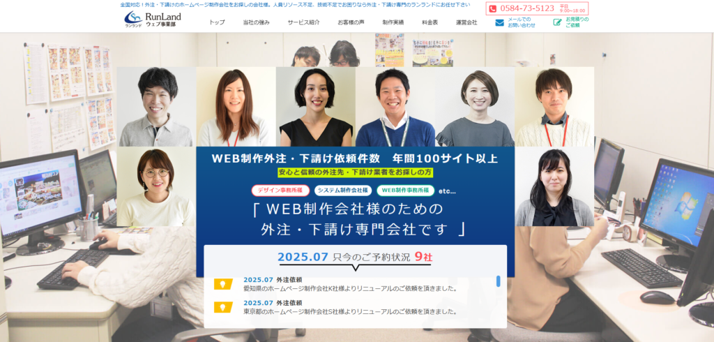制作内容は企業サイト・ブランドサイト・LPなど多岐に渡り、特に中小企業や自治体、サービス業のクライアントから支持を得ています。外注依頼も多数受けていることから、業界水準を満たす技術力と信頼性を備えていることがわかります。